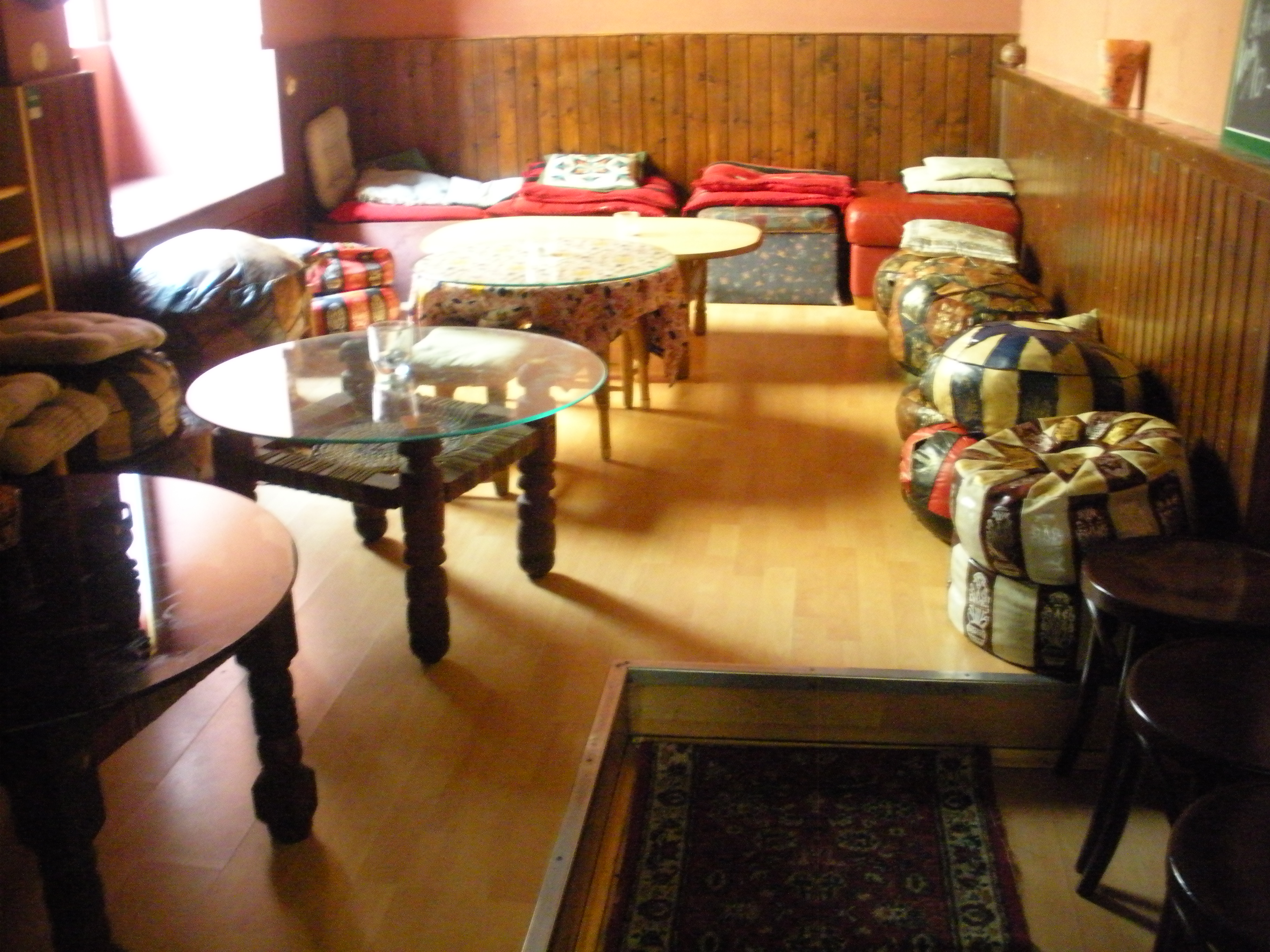Sudanesisch eingerichteter Raum zum Entspannen, am Boden sitzen, sich in syrische Polster kuscheln oder auf arabischen Buffs liegen und bei Kerzenschein afrikanisches Essen und Feeling genießen. Für Gruppen oder geschlossene Gesellschaften hervorragend geeignet.
